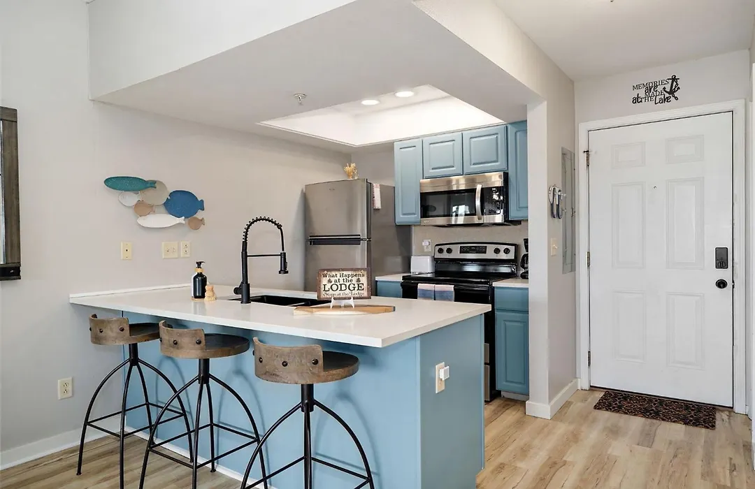 Die Ferienwohnung Bridge Breeze Family Retreat ist mit einer voll ausgestatteten Küchenzeile für den Komfort der Gäste ausgestattet.
